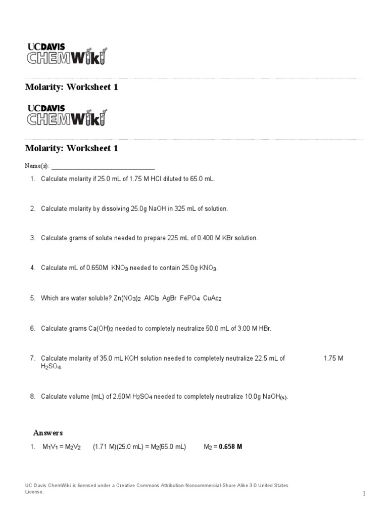 Dilutions worksheet 1 if i add 25 ml of water to 125 ml of a 0 15 m naoh solution what will the molarity of. Molarity by dilution worksheet answers instructional fair The most obvious is diluted or dilution.